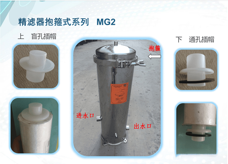 精密过滤器又称保安过滤器,一般设置在压力容器之前,以去除浊度1度以上的细小微粒,来满足后续工序对进水的要求;有时也设置在整个水处理系统的末端,防止细小微粒(如破碎的树脂)进入成品水。