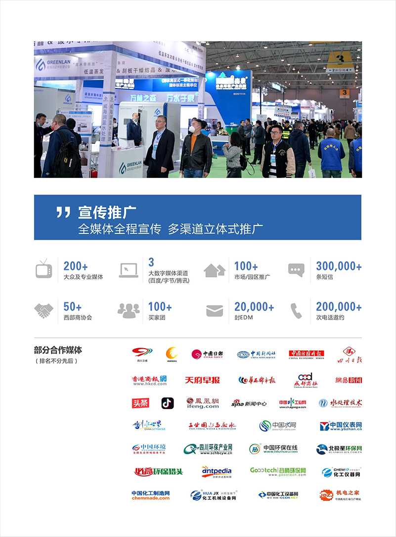 成都国际水展(CDWE)由成都华意中联展览有限公司联合四川省水务行业相关协会共同举办,中意合资运营,是深耕西部市场的水处理专业商贸交流平台。 作为2024成都国际环保博览会(CDEPE2024)核心主题展,大会重点邀请国家城市污水处理及资源化工程技术研究中心、四川省城镇供水排水协会、四川省环境保护产业协会、四川省水污染治理服务协会、中国市政工程西南设计研究总院、成都市市政工程设计研究院等川渝水务机构,携手意大利国际环保水展(ECOMONDO)国际资源,构建产业链格局,共享观众及产业资源,是企业了解西部市场、推广品牌形象、结交合作伙伴、对接终端客户的绝佳契机。